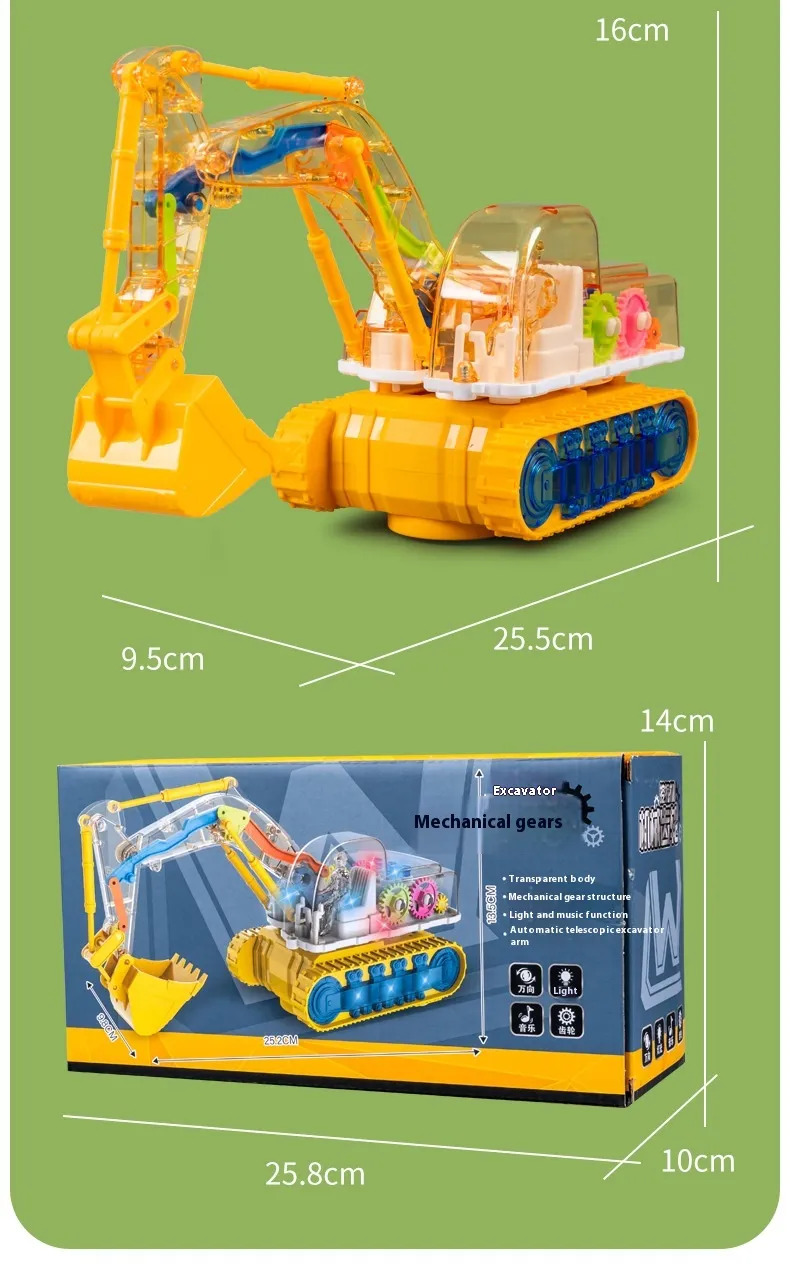 Children's Toy Transparent Mechanical Gear Excavator Movable Joint Light Toy