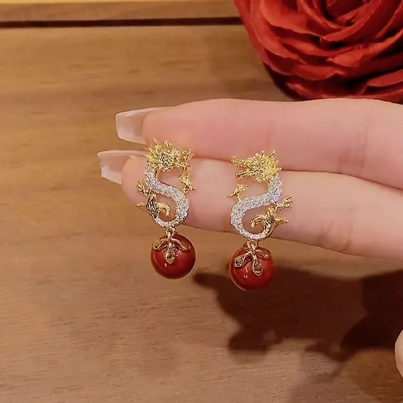 Why Choose the Chinese Style Festive New Year Red Beads Zodiac Dragon Stud Earrings?