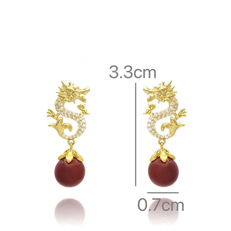 Key Features of the Chinese Style Festive New Year Red Beads Zodiac Dragon Stud Earrings