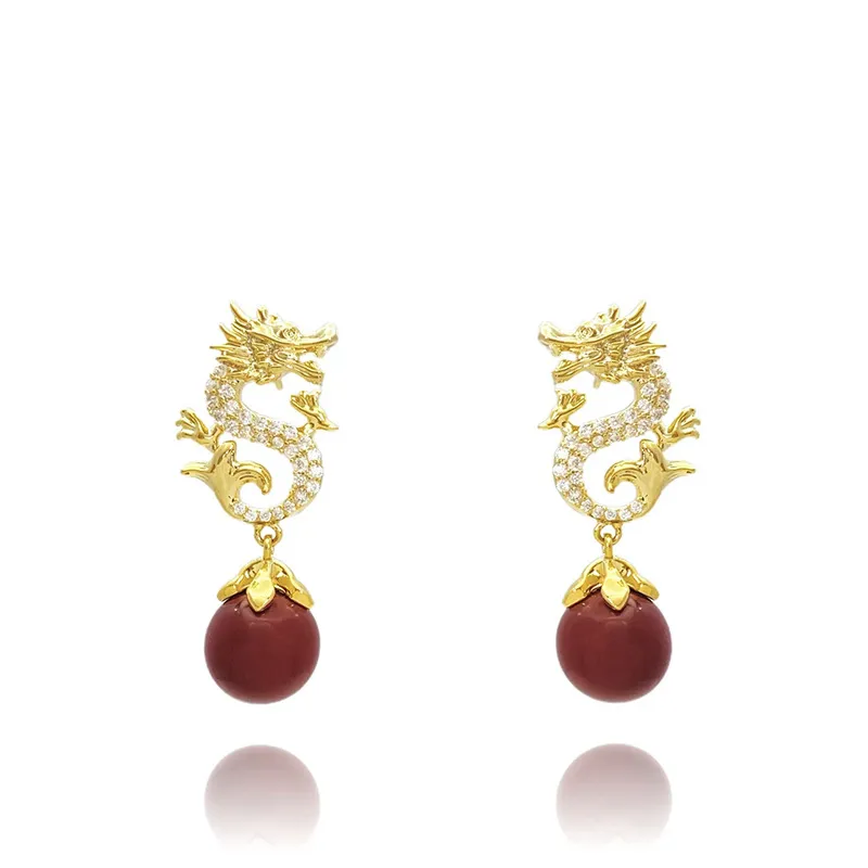 Why Choose the Chinese Style Festive New Year Red Beads Zodiac Dragon Stud Earrings?