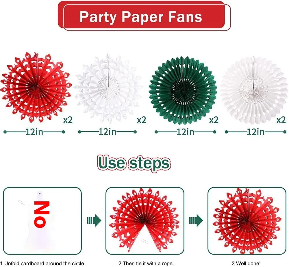 The colourful paper honeycomb balls open into three-dimensional spheres that add volume and texture to your decorations. Hang them from ceilings, stair rails, or tree branches to create depth and visual excitement. Their foldable design allows for quick assembly and compact storage after the holidays.