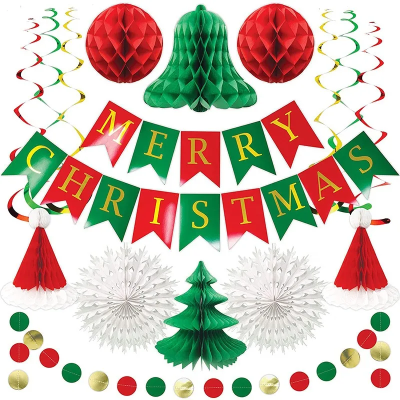 Christmas Honeycomb Ball Suit Christmas Hat Pendant Christmas Letter Hanging Flag Spiral Latte Art