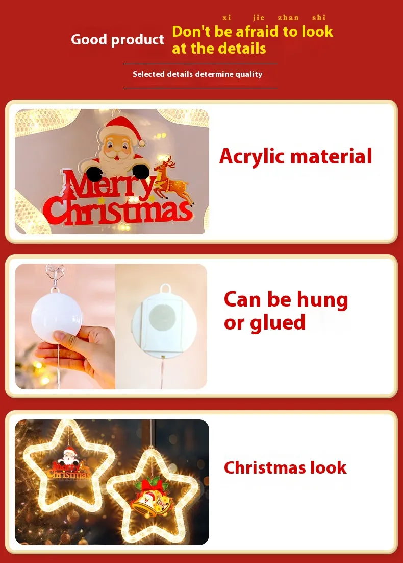 versatile use for indoor and outdoor decorations on smooth surfaces like windows, walls, doors, balconies, and Christmas trees.
