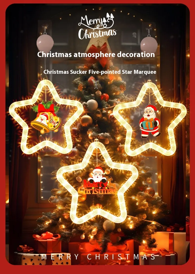 Christmas Pendant Decoration Christmas Atmosphere Led Lights Led Christmas Star Light Decoration For Window Door For Holiday