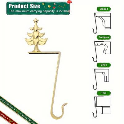 Christmas Sock Hook Heavy-Duty Metal Stocking Hanger with Elegant Red & Gold Design