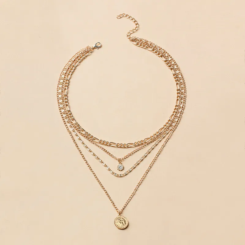 CHUNKY GOLD NECKLACE: The layered coin necklace has a stunning design that looks classic strung along a delicate chain.