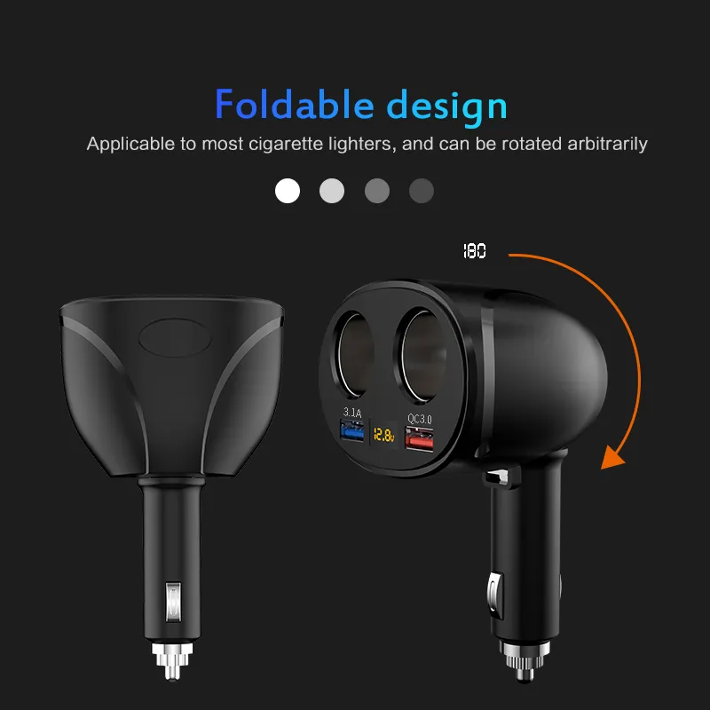 1. Product name: Rotating digital display dual cigarette lighter fast charging car charger