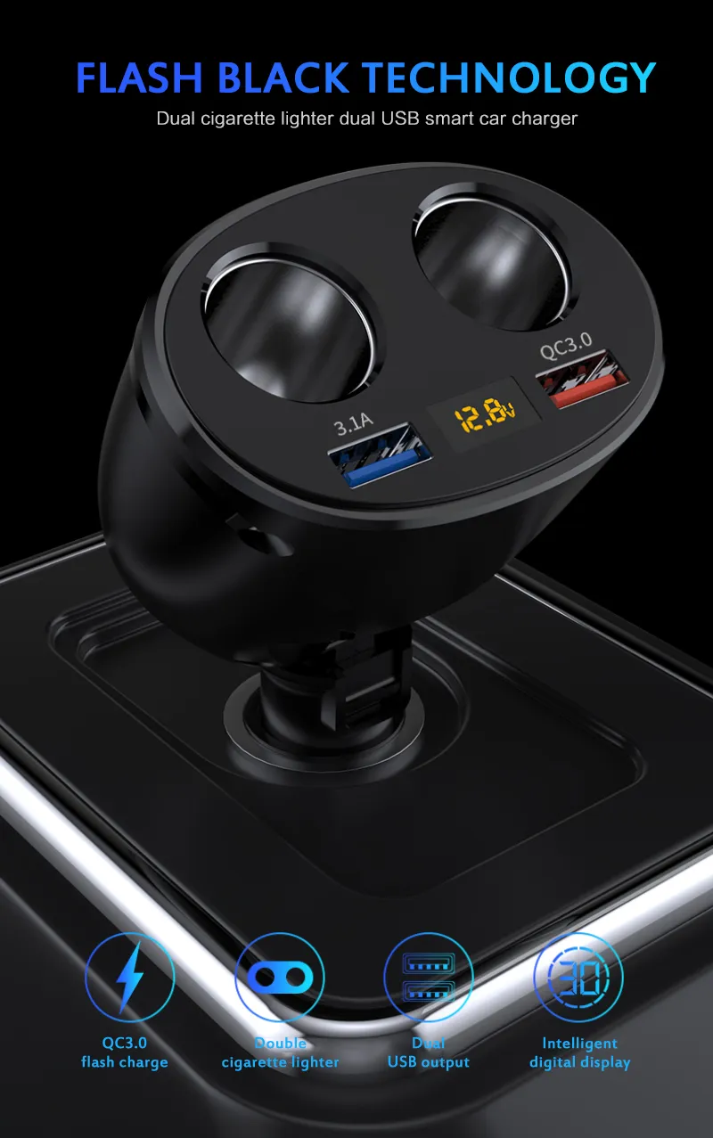 1. Product name: Rotating digital display dual cigarette lighter fast charging car charger