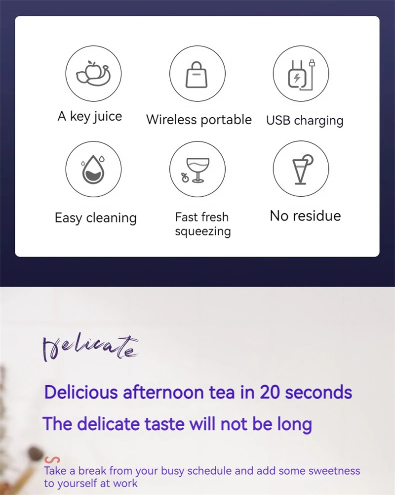 Introducing the CitrusCharge Portable Juicer, the ultimate kitchen gadget designed to make homemade juicing effortless and enjoyable. This USB rechargeable electric citrus juicer is perfect for extracting fresh, pure juice from a variety of citrus fruits, ensuring you get the maximum flavor and nutrients in every glass.