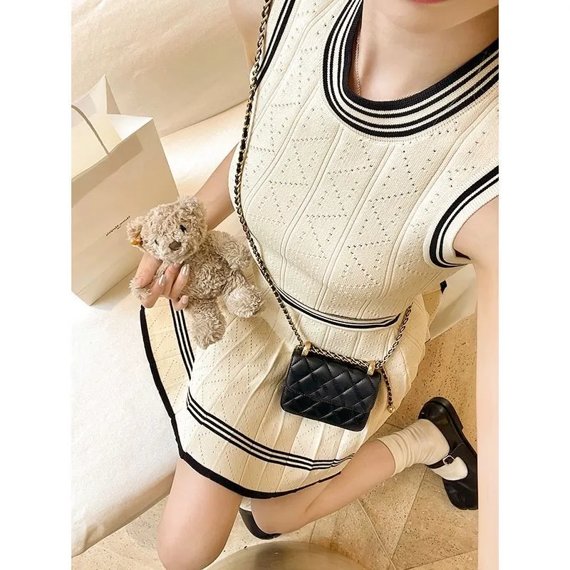 Classic Style Knitted Long Sleeve Cardigan Coat Inner Vest Women's Autumn Skirt Three-piece Set