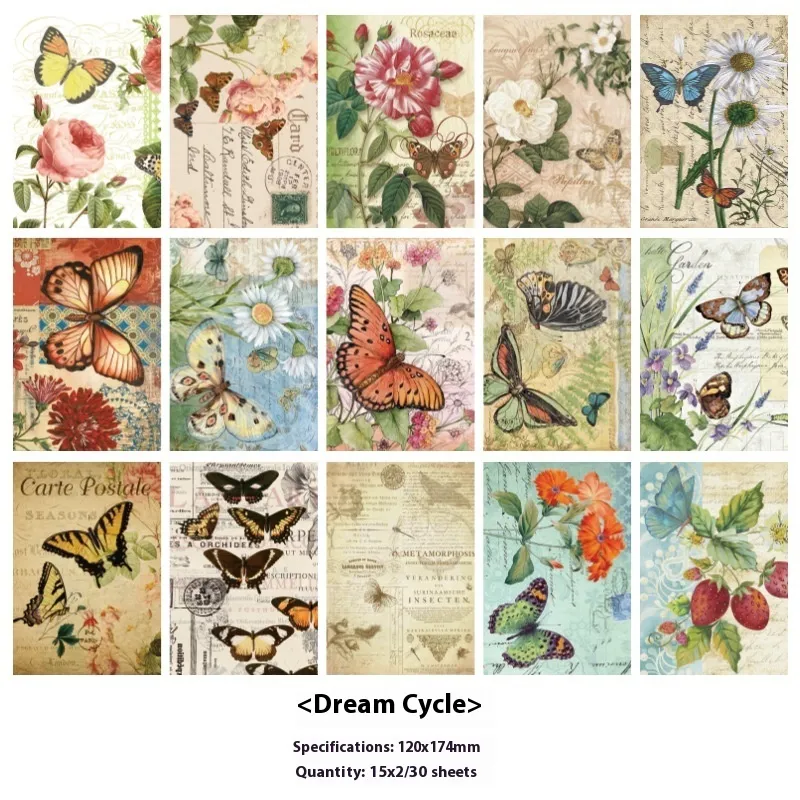 Color: Voyage diary, newspaper dust, yellow letters, Butterfly Dream Cycle, quaint movement, plant notes