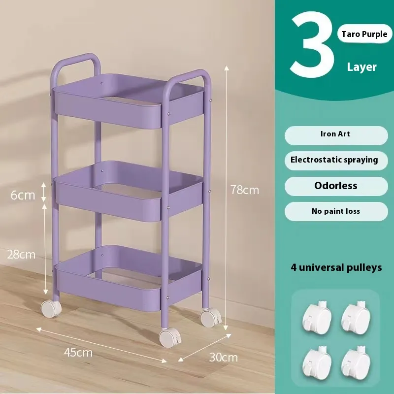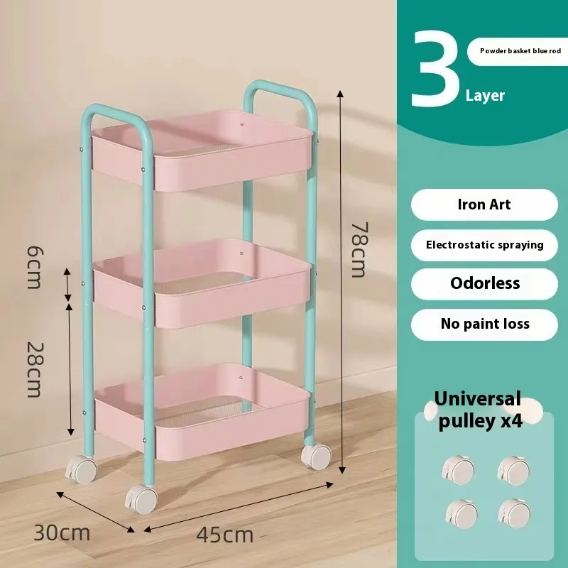 green basket White Rod trolley, 3-layer carbon steel red basket beige Rod trolley, 3-layer lake blue carbon steel trolley, 3-layer pink
