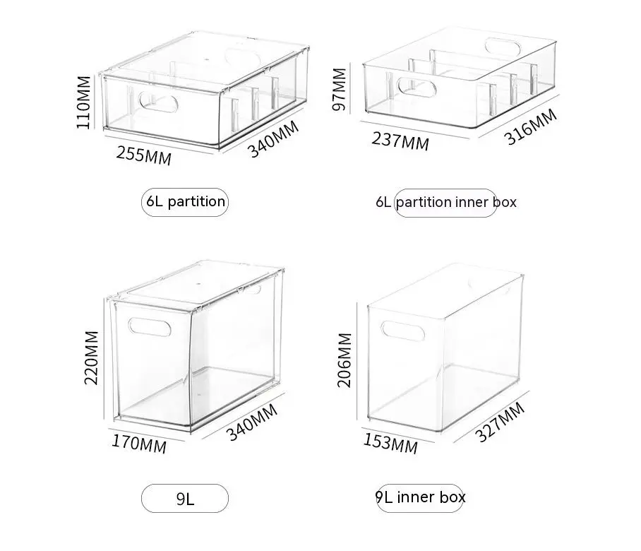 Clear Boxes are made from high-quality, transparent plastic or acrylic, providing a sturdy and reliable storage solution. These boxes are designed to allow you to see what’s inside at a glance, making them perfect for organizing items in closets, drawers, or on shelves. They come in various sizes, from small boxes for jewelry, office supplies, and craft materials, to larger boxes for clothes, toys, or holiday decorations.