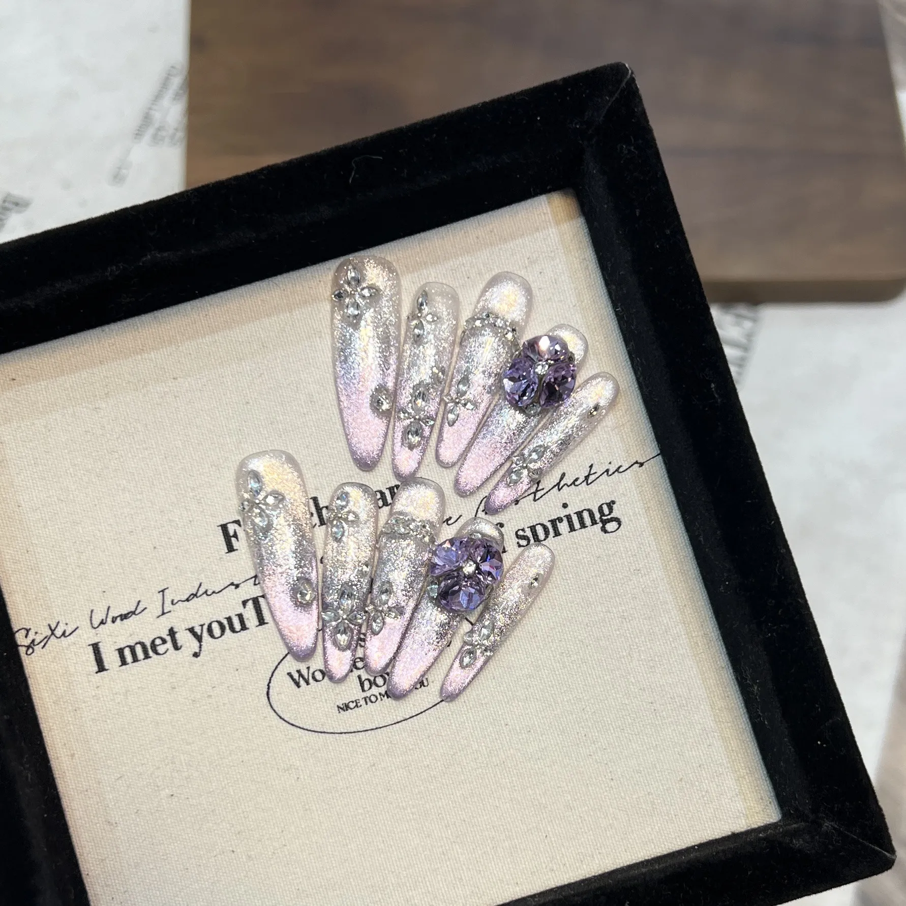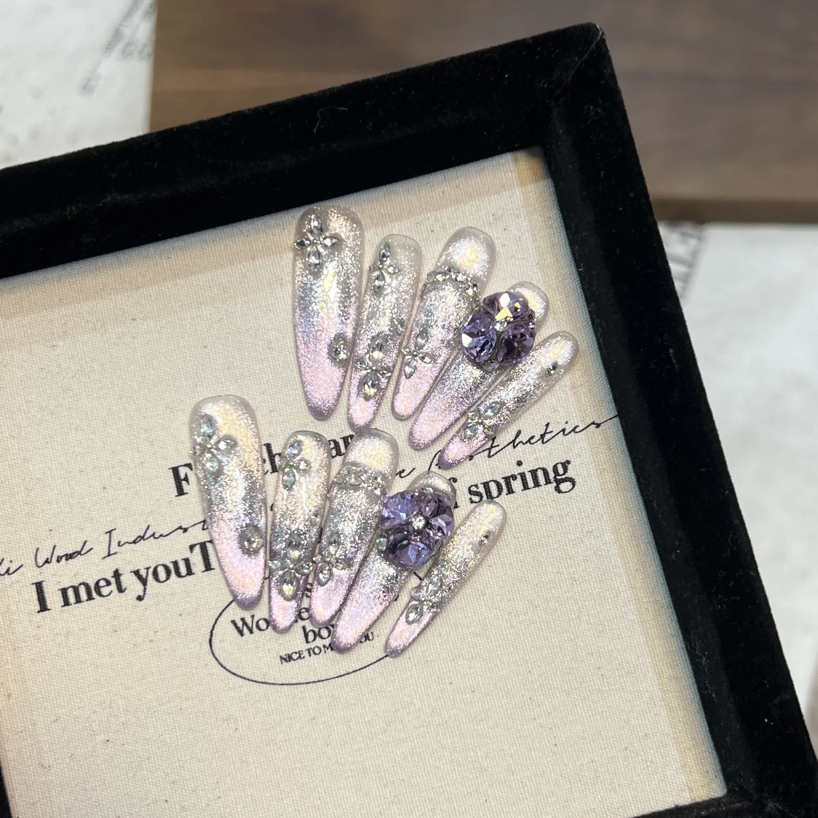 Clean with Care: To avoid dulling the shine or damaging the rhinestones, clean your nails with a soft cloth and avoid
