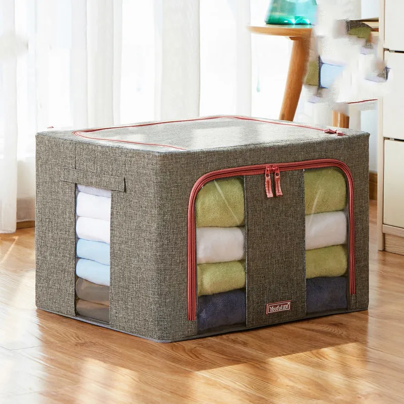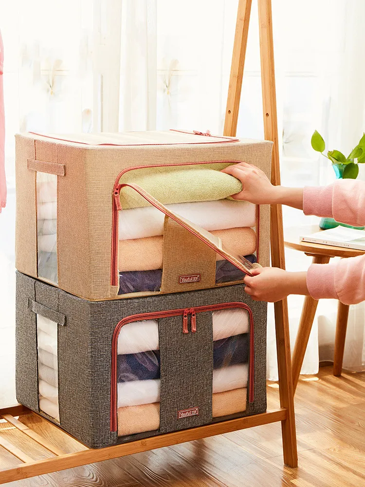 Plastic, fabric, or wooden containers ideal for seasonal clothes, accessories, or shoes.