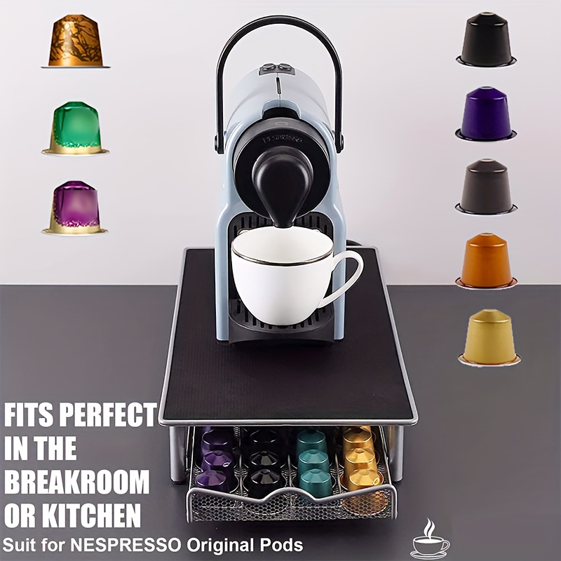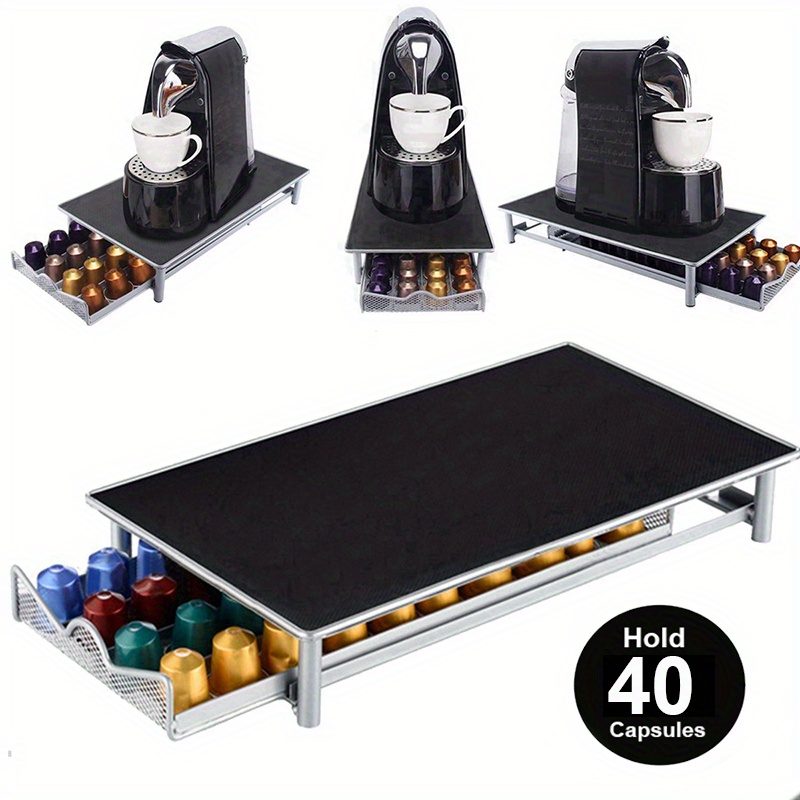 holders or bulky racks, it integrates storage directly beneath your coffee machine, creating a streamlined and efficient coffee station. For