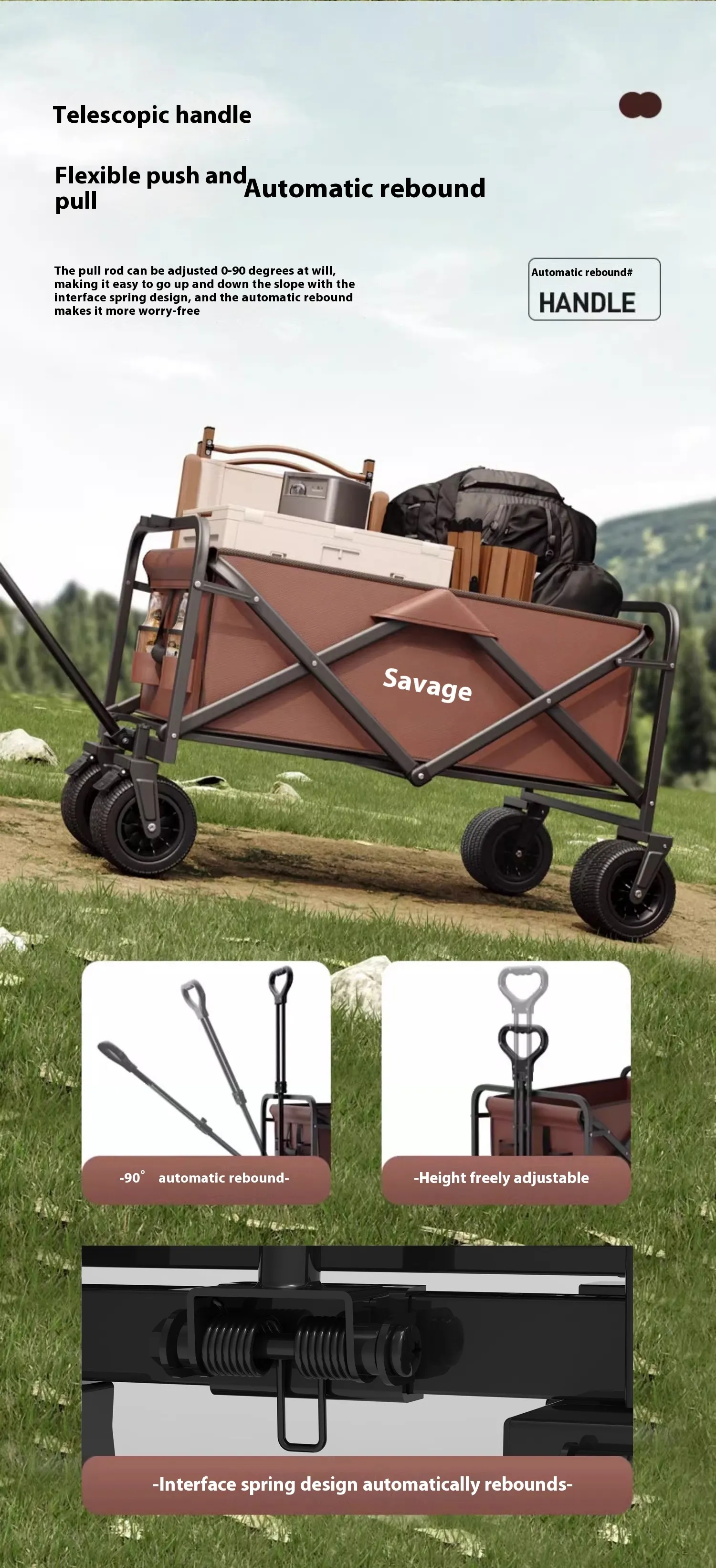Perfect for picnics, festivals, sports games, gardening, or household chores, the collapsible wagon adapts to various needs with ease.