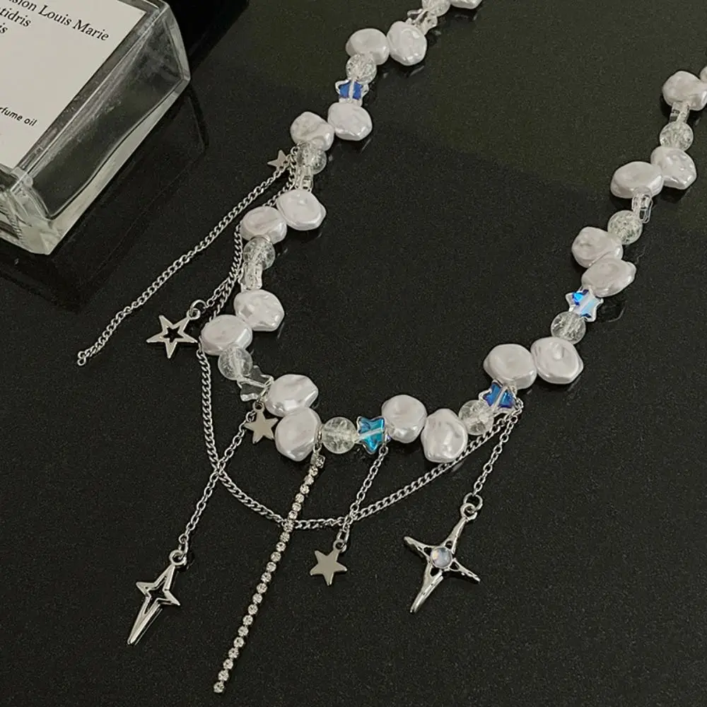 The combination of baroque pearls, colorful beads, and star accents makes this necklace a standout piece for fashion-forward individuals.