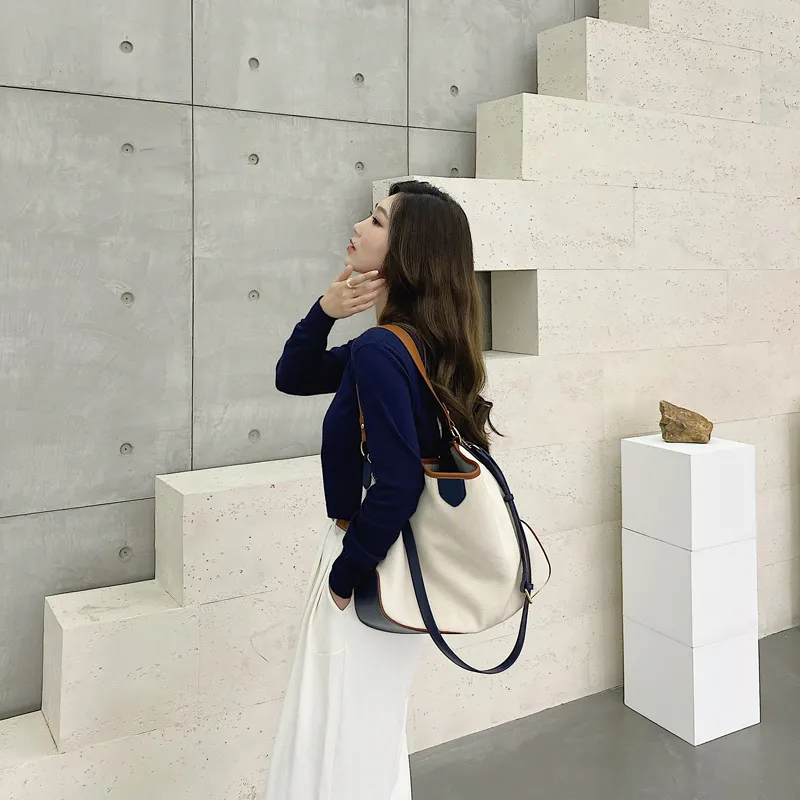 Perfect for New Zealand women who love casual, practical, and fashionable bags, the College Style Contrast Tote Canvas Bag is the ultimate accessory for those on the go.