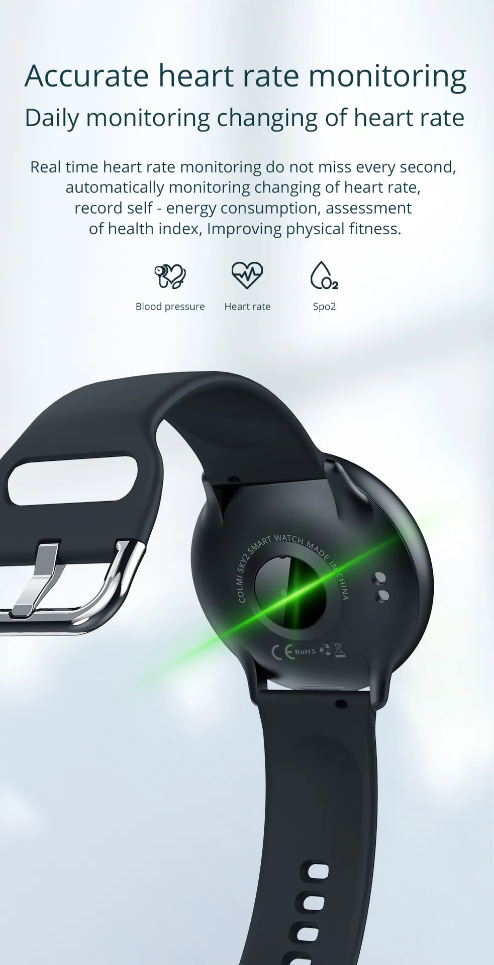Heart Rate Monitoring: Equipped with advanced sensors, the SKY2 provides continuous heart rate monitoring, helping you stay