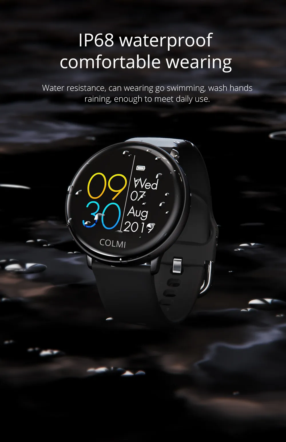 Designed to withstand various environmental conditions, the COLMI SKY2 boasts an IP68 waterproof rating. This ensures reliable performance during daily activities, including exposure to water, making it suitable for workouts, outdoor adventures, and daily wear.​