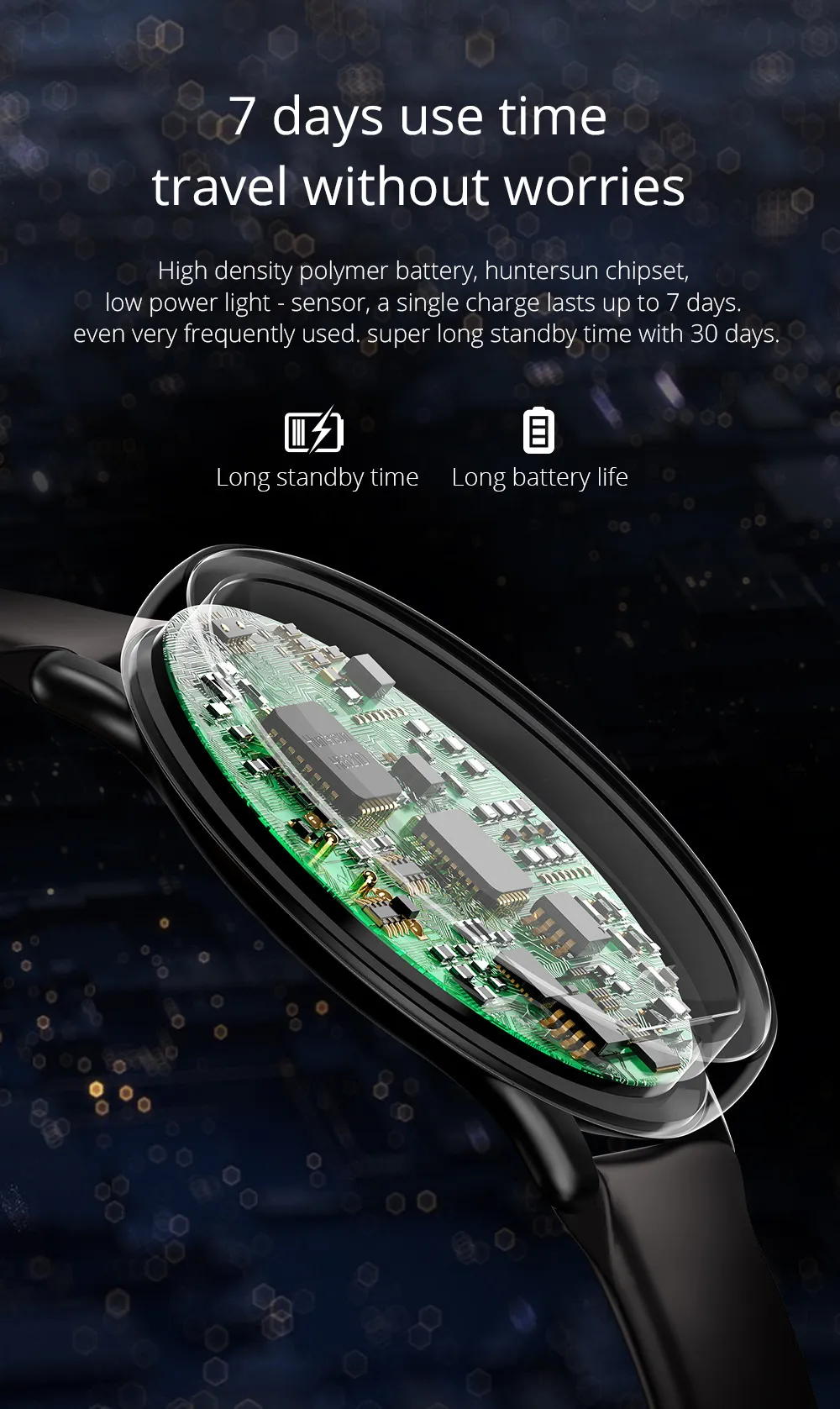 Featuring a 150mAh battery, the SKY2 offers extended usage time, reducing the frequency of charging. This ensures uninterrupted tracking of your activities and health metrics throughout the day.​