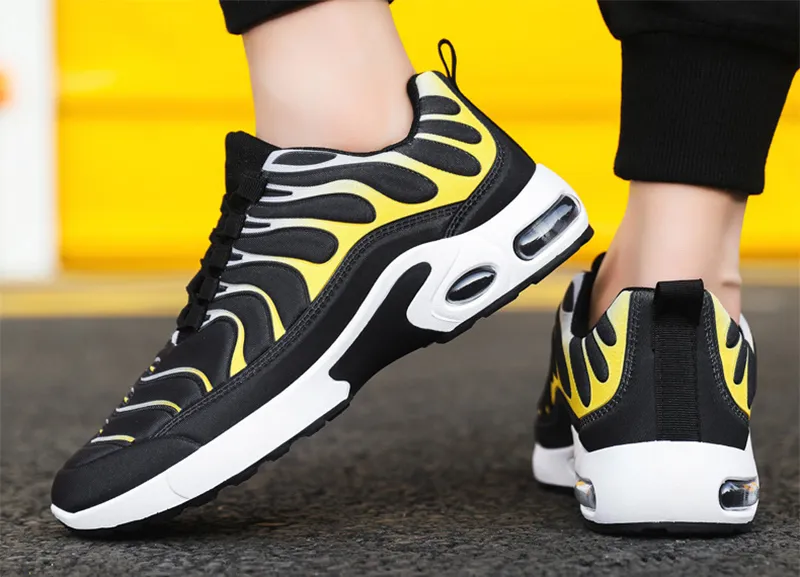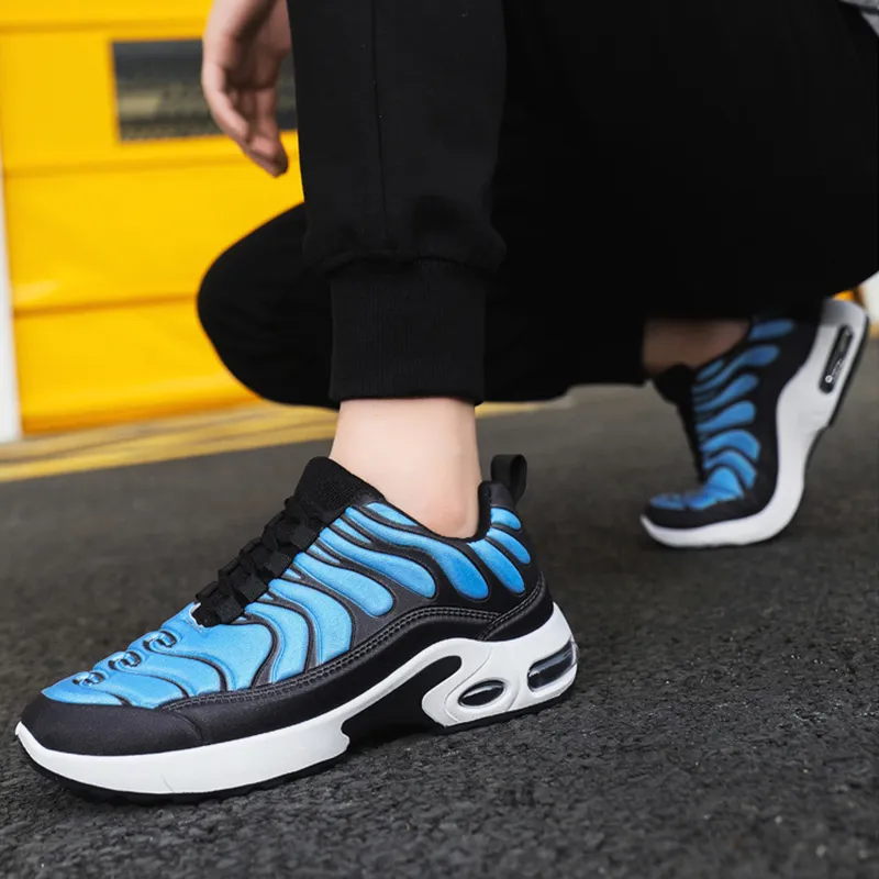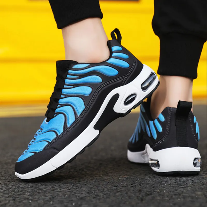 Color-blocked Sneakers Men Personalized Fashion Lace Up Air Cushion Sports Shoes Casual Outdoor Running Walking Shoes