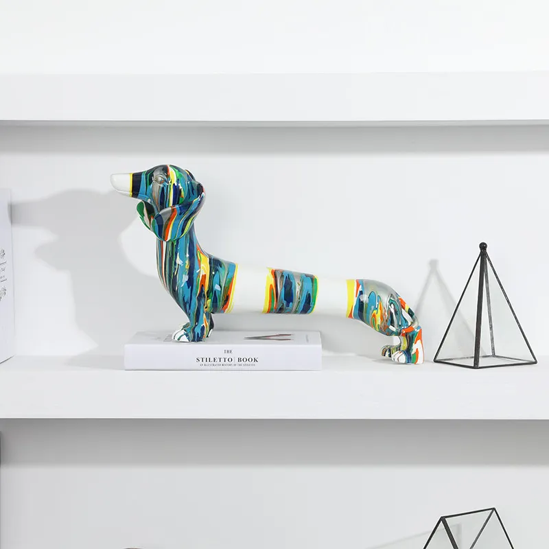 With its bright colors and detailed design, this dachshund dog brings joy and character to any space. Whether you’re a dog lover, looking for a unique gift, or simply want to add a fun, quirky element to your home décor, this resin crafts animal figure is sure to bring a smile to your face. Its delightful design will appeal to both children and adults alike, making it an ideal addition to any room, from living rooms to offices or nurseries.