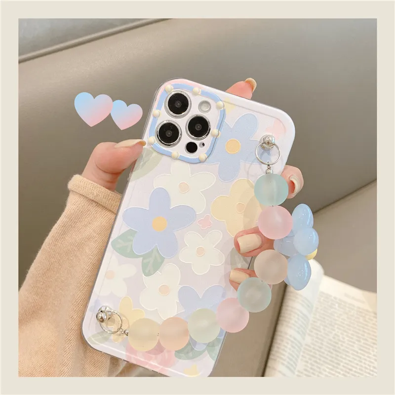 Color Bead Chain Apple 7/8/se2 (Universal) Blue Camera Circle Photo Frame Light Purple Bottom Full Screen Color Flowers + Color Bead Chain
