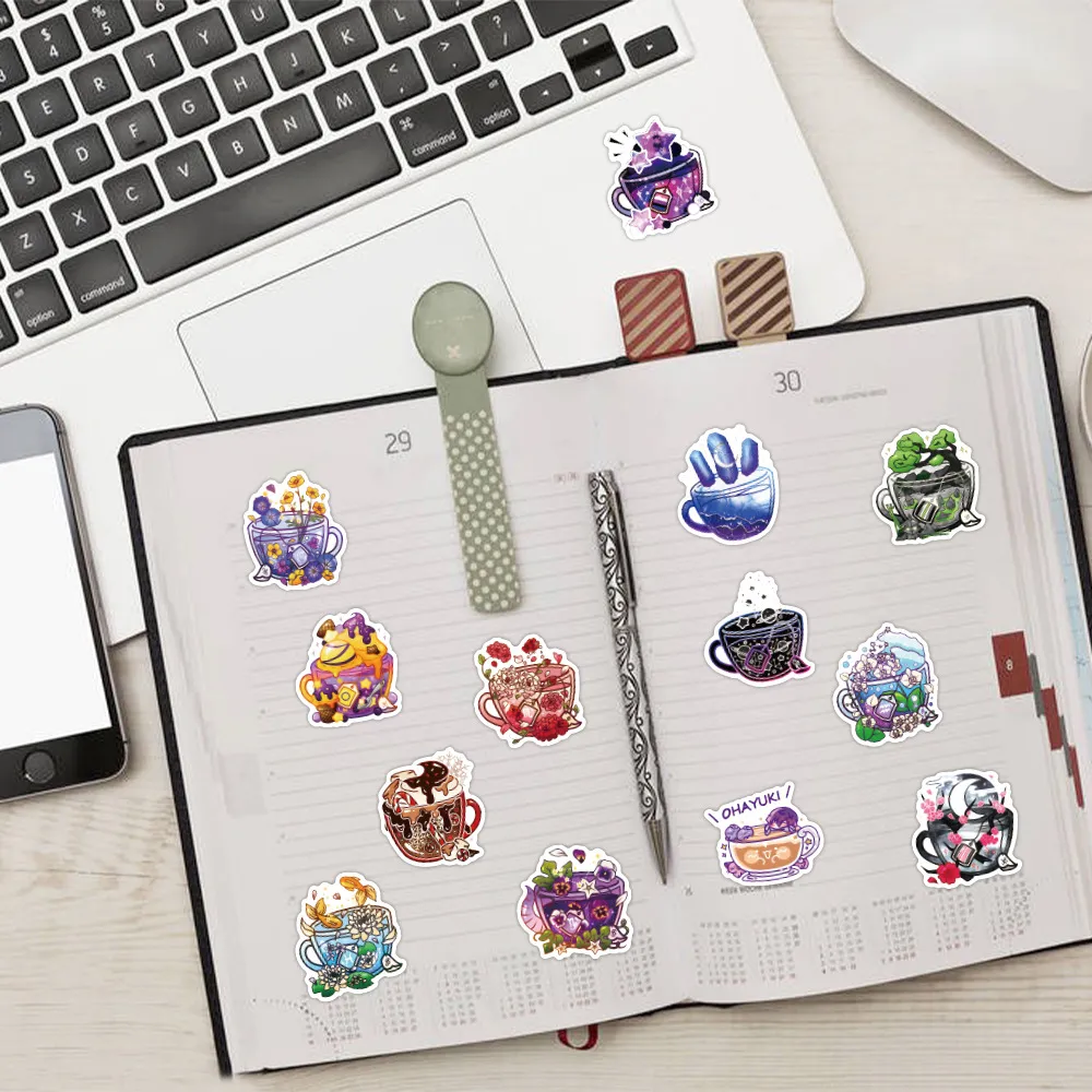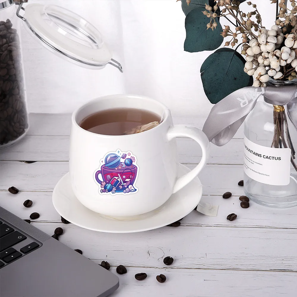 Vibrant Graffiti-Inspired Designs: The stickers feature colorful, eye-catching designs that combine tea cup motifs,
