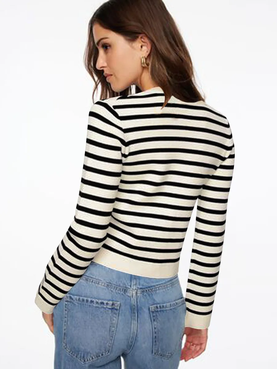 Comfort And Casual Long Sleeve Striped Button Top