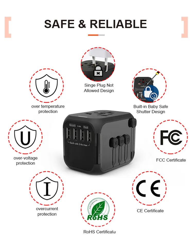 - Universal Compatibility: Works with outlets from various regions, including Europe, Asia, Australia, and the Americas.