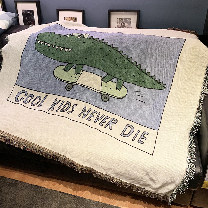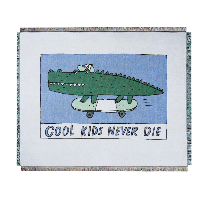 Introducing the Cool Croc Adventure Throw Blanket – a perfect blend of fun and comfort for kids and adults alike! This vibrant throw blanket features a playful green crocodile design accompanied by the phrase "Cool Kids Never Die," making it an instant favorite for anyone who loves a touch of whimsy in their decor.