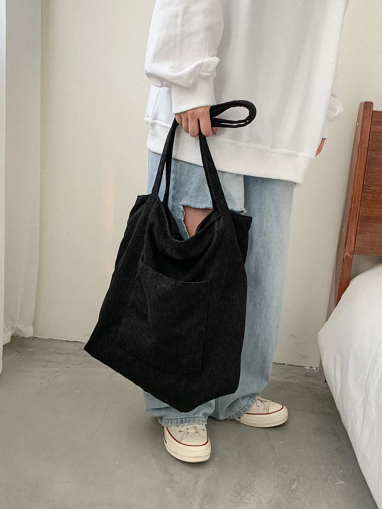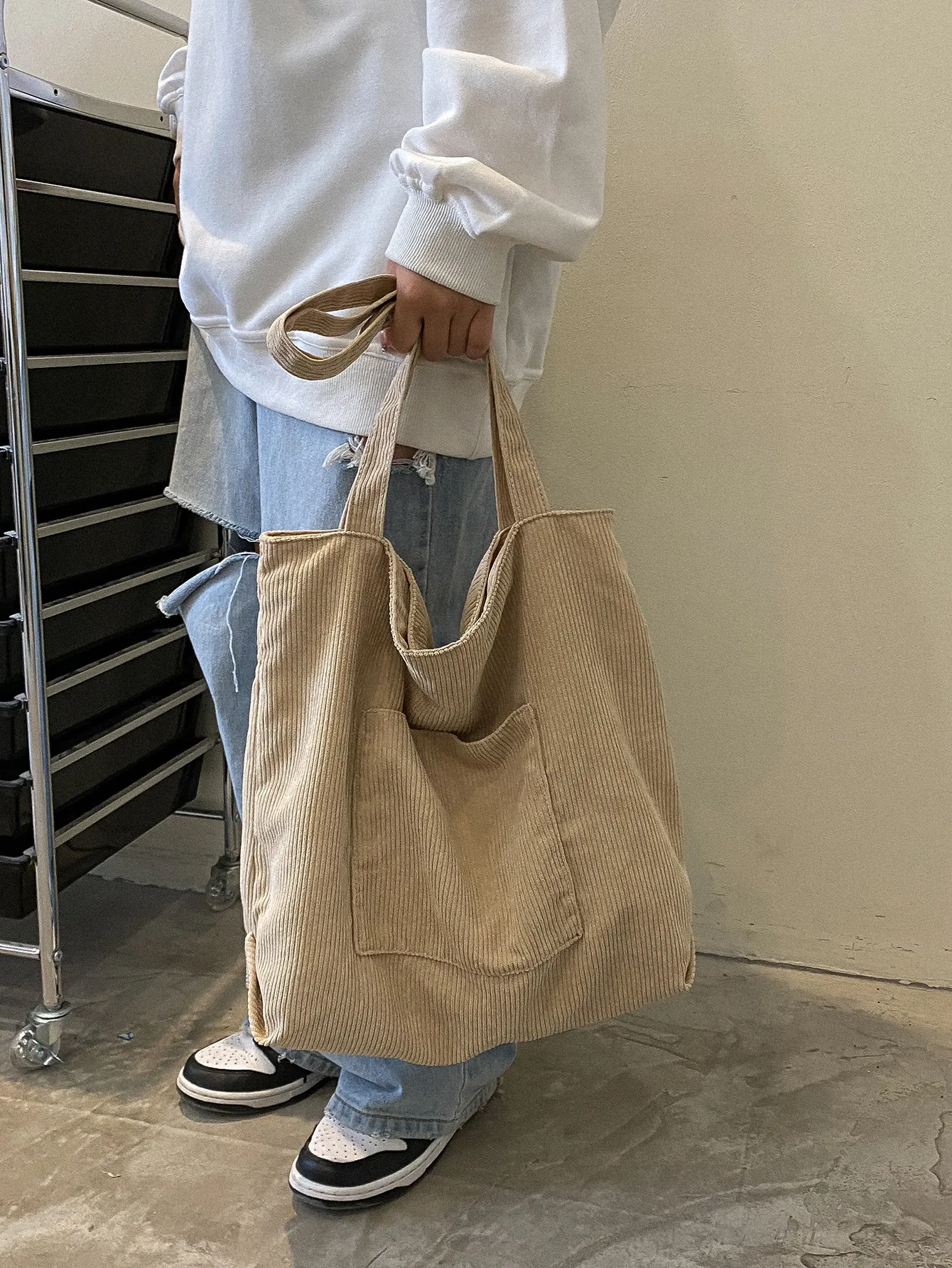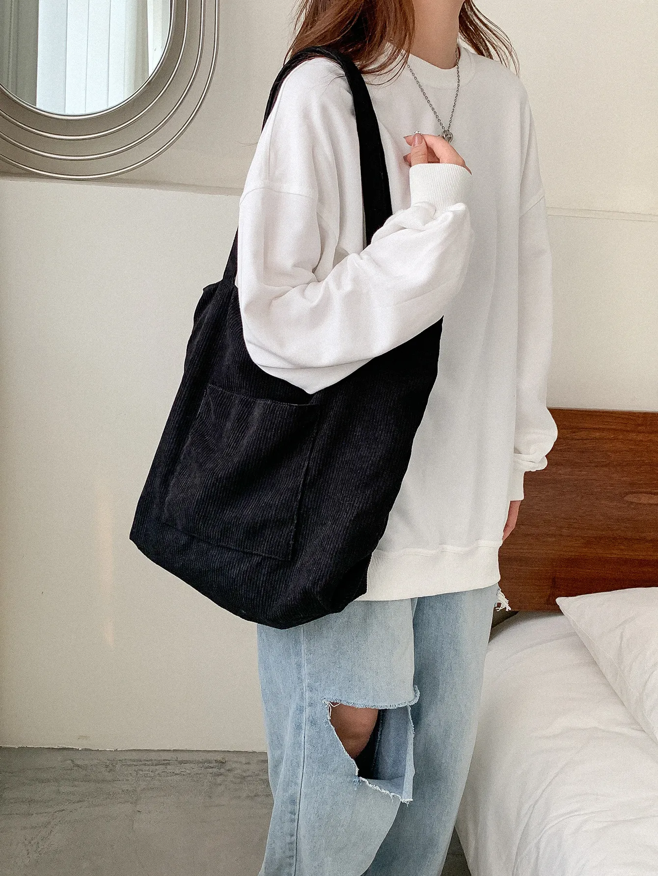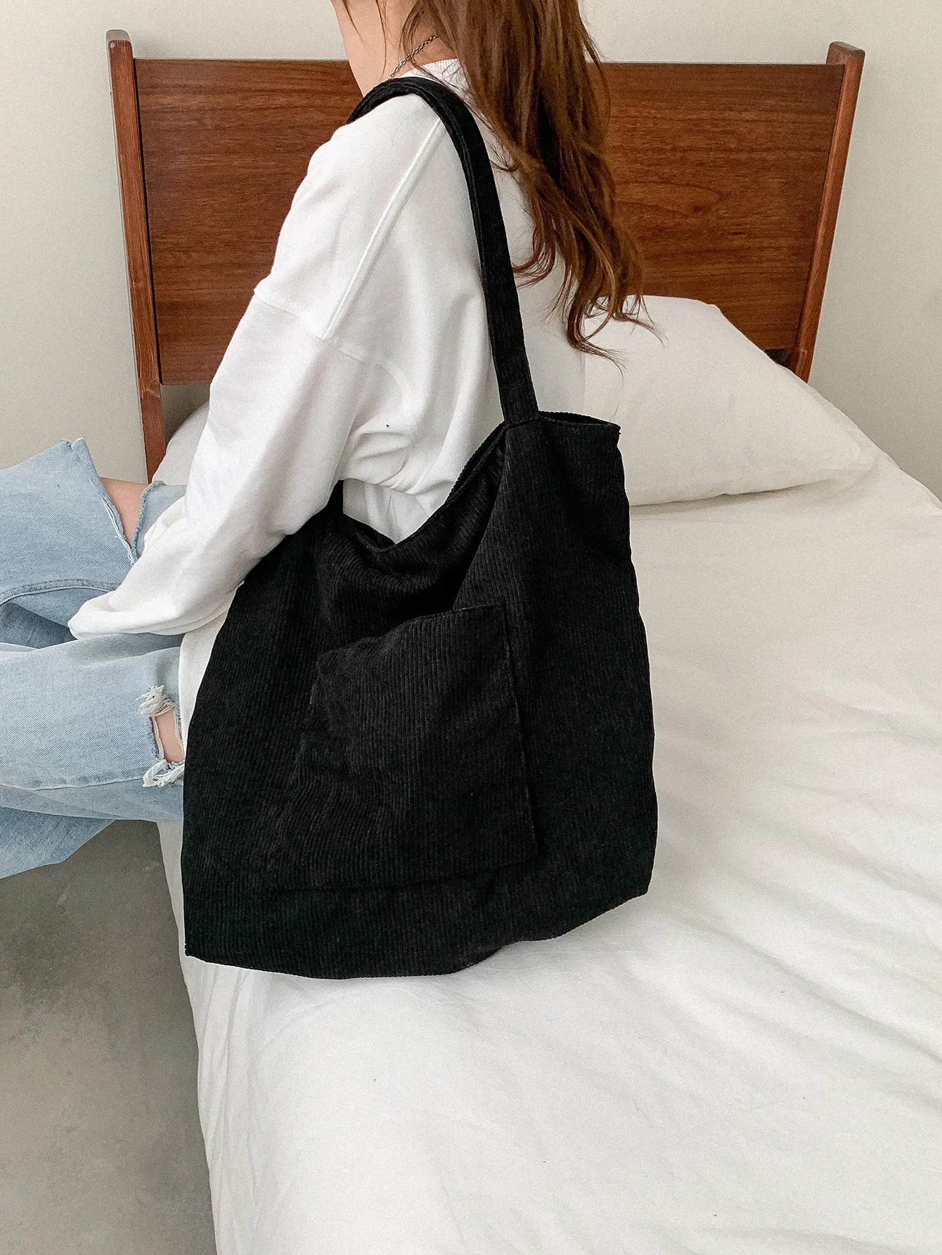 Corduroy Cloth Versatile Large Capacity Shoulder Bag Literary Handbag