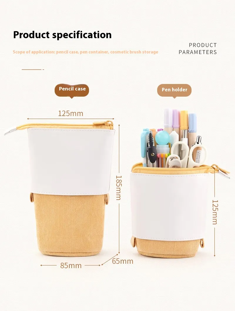 In conclusion, the Corduroy Drop-down Telescopic Creative Simple Stationery Case offers an innovative and stylish way to store and organize your stationery. With its durable corduroy fabric, expandable design, and versatile functionality, it provides the perfect balance of practicality and style. Ideal for anyone who values both organization and aesthetics, this case will keep your pens, pencils, and accessories safe, organized, and easily accessible.