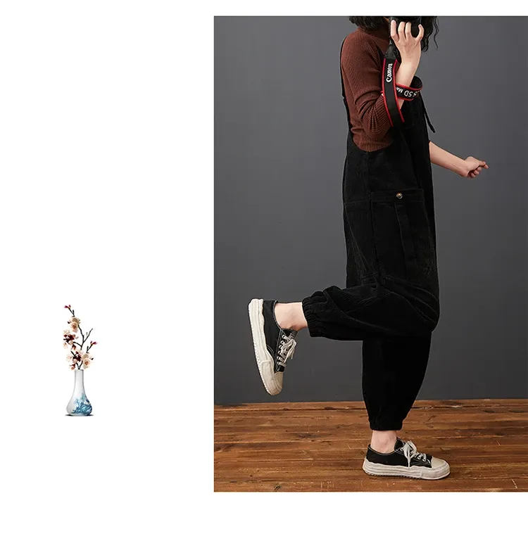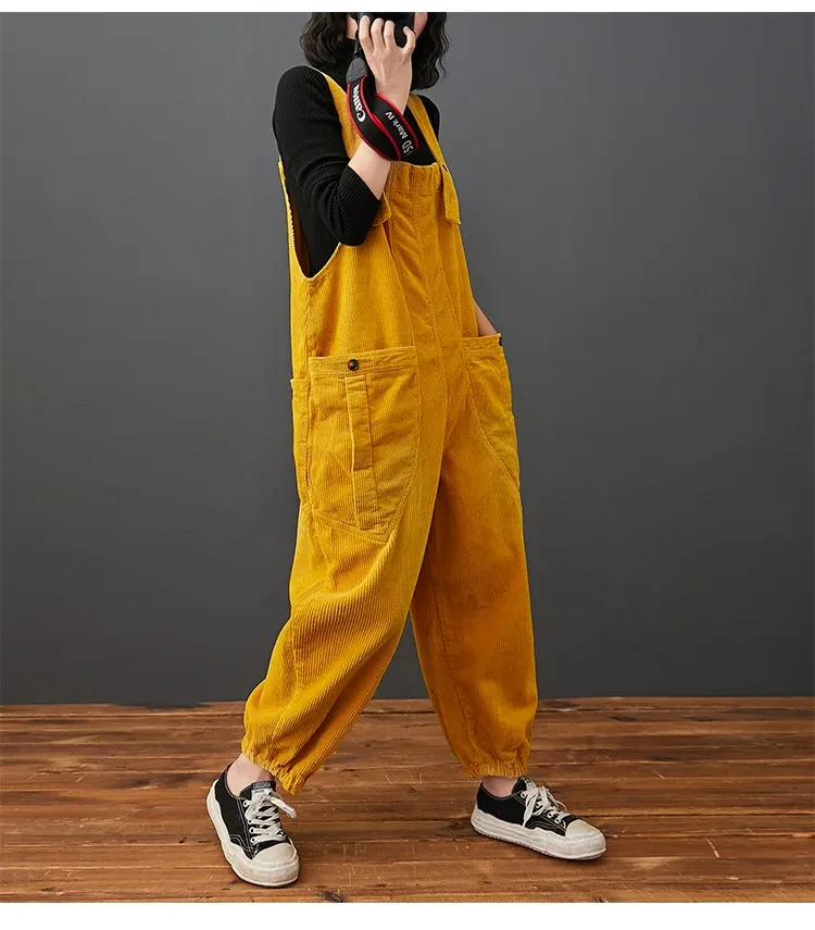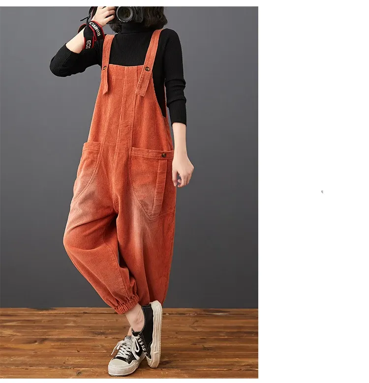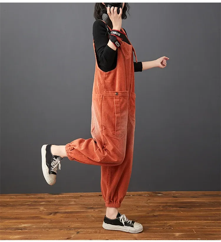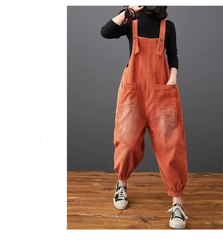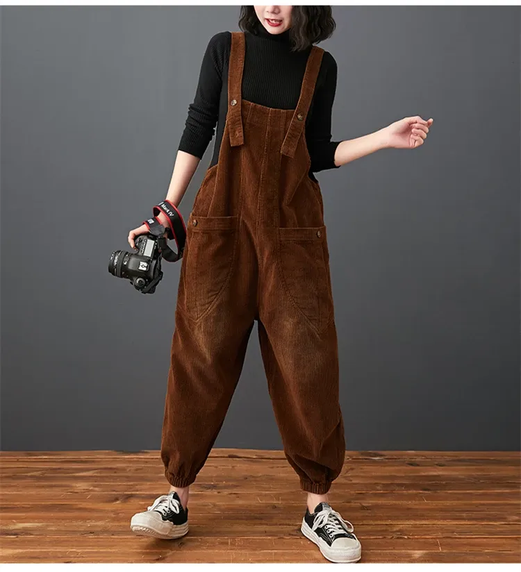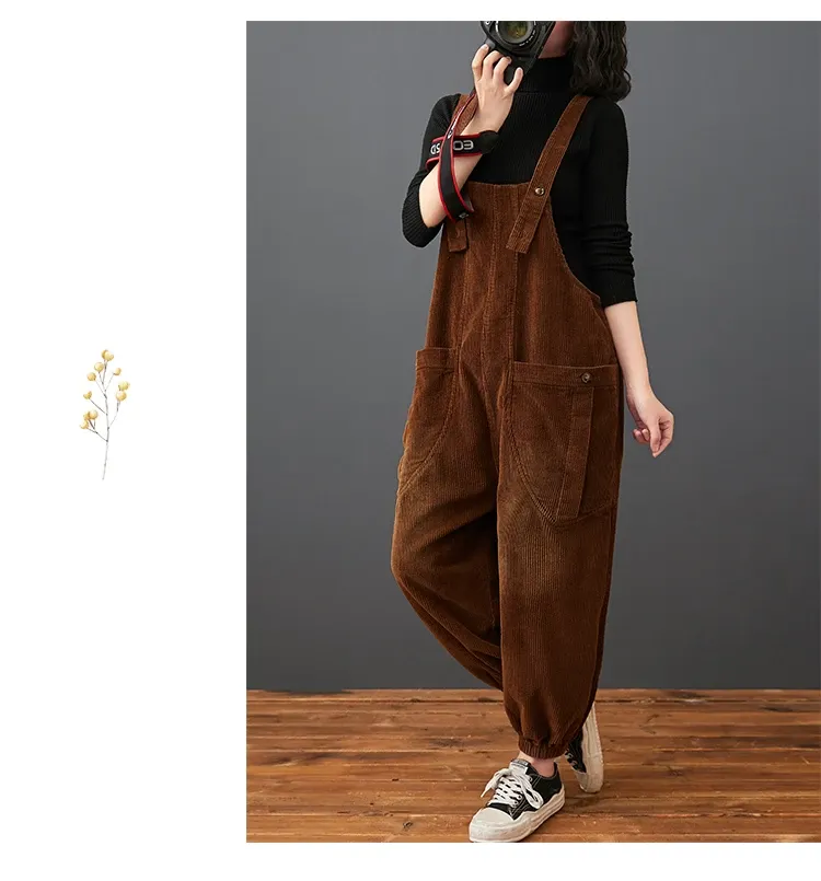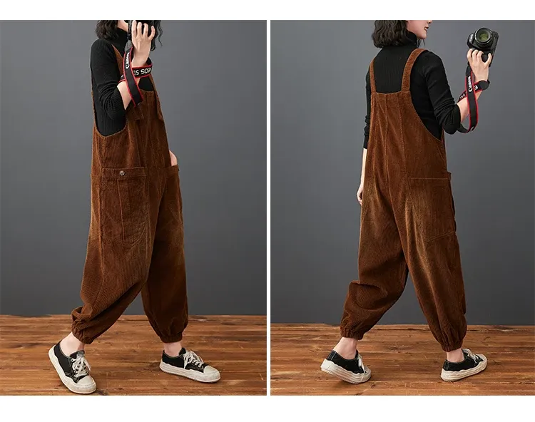 Corduroy Large Pocket Age Reduction Plus Size Overalls