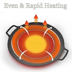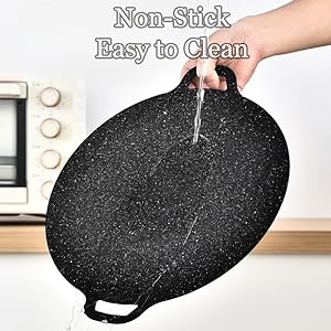 - Ergonomic Handling: Dual heat-resistant handles and detachable legs simplify transport; concave center prevents oil spillage during cooking