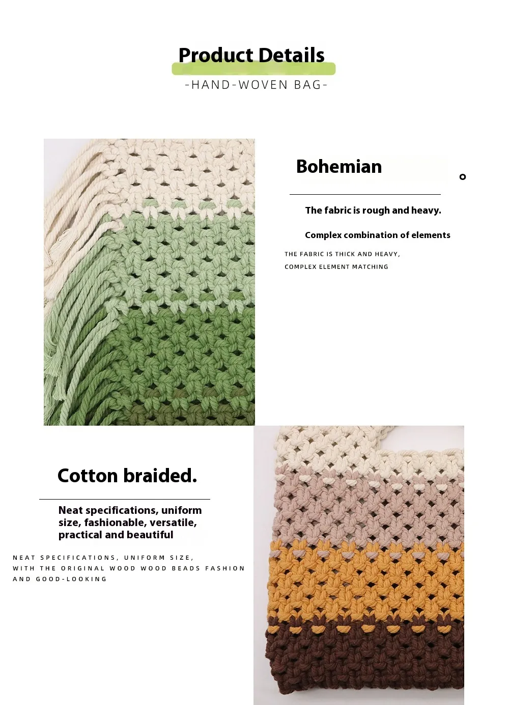The Cotton String Woven Handbag - Simple Elegance is a timeless accessory that combines eco-friendly materials with a minimalist design. Perfect for casual outings, shopping, or a day at the beach, this bag offers a blend of style and functionality. Its woven texture and lightweight construction make it a go-to choice for modern, eco-conscious women.
