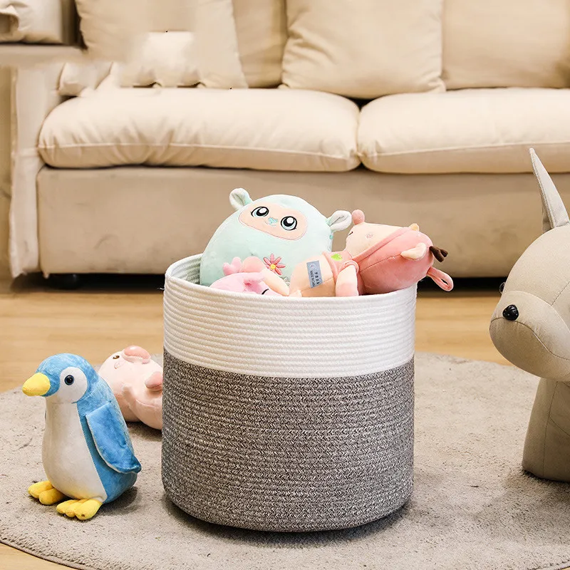 Cotton String Woven Laundry Basket Color Matching Household Storage Basket