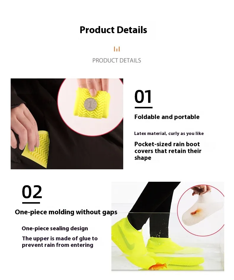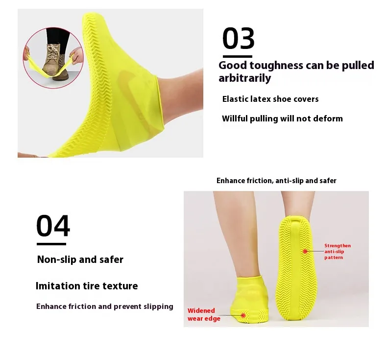 Ideal for outdoor activities, commuting, or simply running errands during rainy weather, waterproof shoe covers offer convenience, protection, and peace of mind. Their lightweight and foldable design makes them easy to store in your bag, ensuring you are always prepared for unexpected weather conditions.