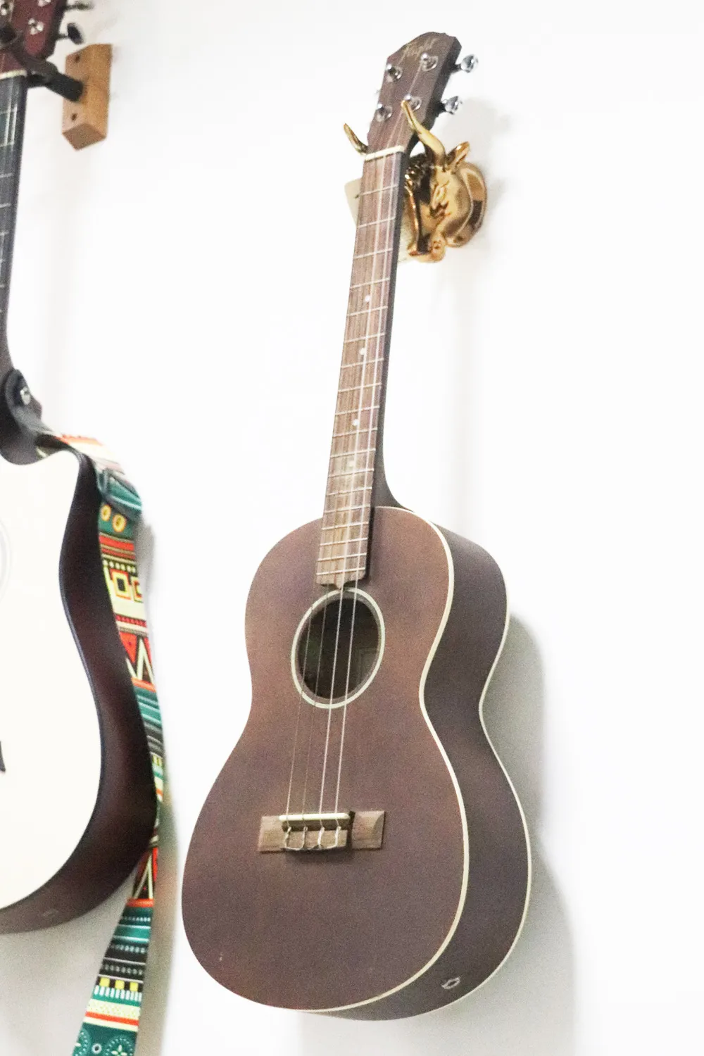 With its durable design, this hook is perfect for various instruments, from electric and acoustic guitars to ukuleles and mandolins. The Cow Head Guitar Hook offers secure storage for a range of instruments, making it a versatile addition to any musician’s space.