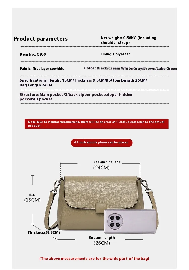 The Cowhide Stylish Simple and Versatile Crossbody Women's Bag resonates with New Zealand’s love for practicality and minimalist fashion. Its sleek design and functional features make it a must-have accessory for Kiwi women.