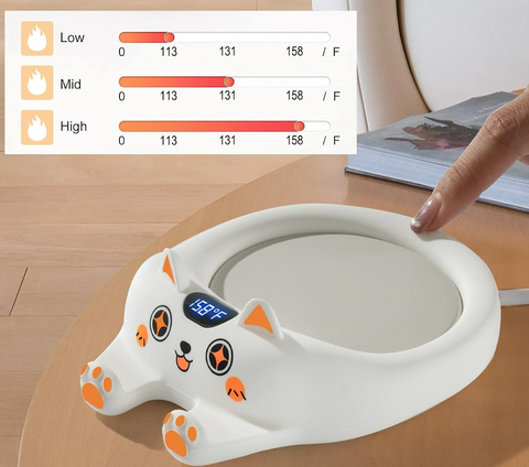use. Whether you have a glass, ceramic, or stainless steel cup, you can confidently place your pet's favorite cup on the heating pad