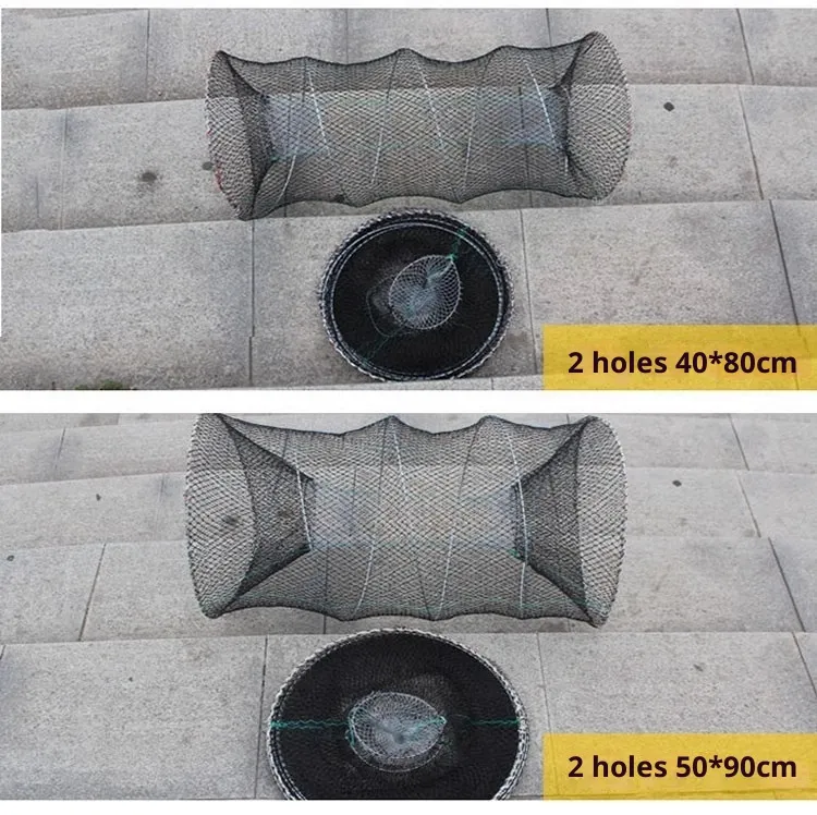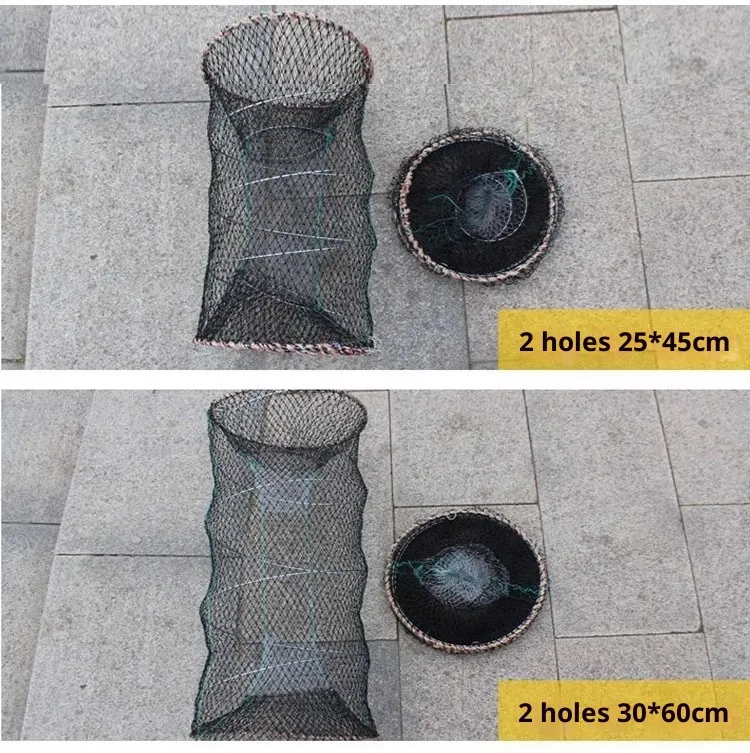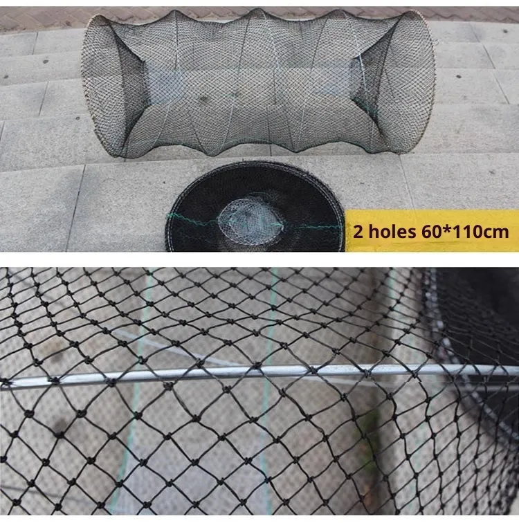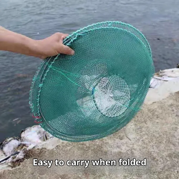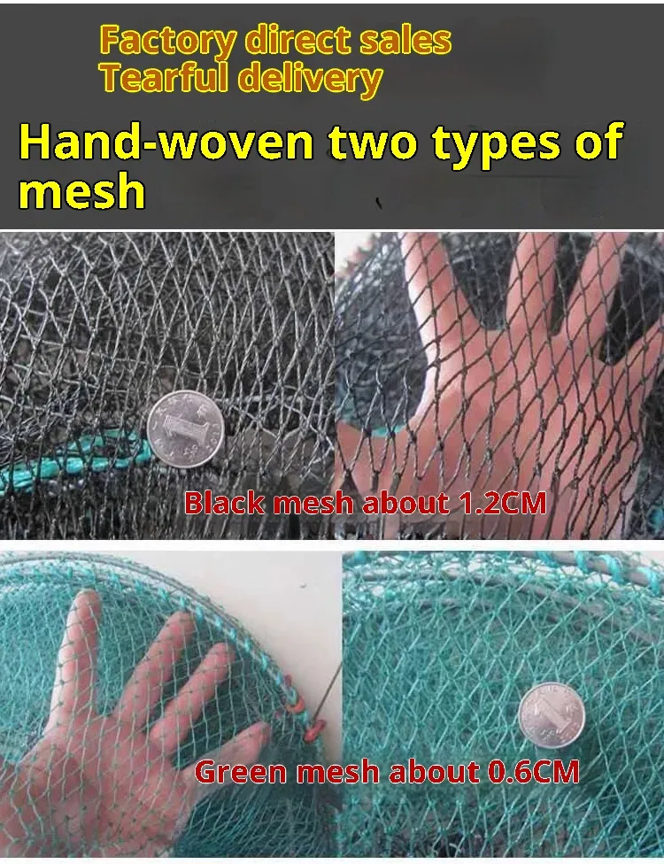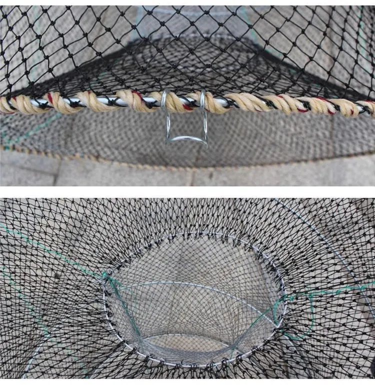 Typically, crab nets are constructed from durable nylon or polyethylene mesh with reinforced frames that help maintain shape and strength underwater. They often feature weighted bottoms to ensure the net remains stable on tidal flats or seabeds, and multiple entrance funnels sized to allow crabs to enter while discouraging escape. Many crabbers use bait bags or chambers placed inside the net to attract crabs with smells, improving catch rates.