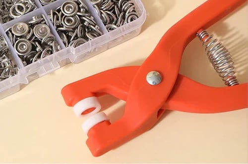 Don't struggle with broken buttons or weak snaps. Get a solution that's designed for permanent, easy repairs and makes fixing clothes simple. Upgrade your sewing, crafting and DIY projects with the ProSnap™ Metal Prong Snap Button Kit, a complete set designed for secure fastening, professional finishes and long-lasting durability. Whether you’re repairing clothing, designing custom bags, adding functional snaps to shoes, or working on leathercraft and fabric accessories, this set gives you everything you need to install clean, strong snap buttons with ease. Each kit includes either 50 or 100 premium metal prong snap buttons, complete with a heavy-duty pliers tool engineered to press and fasten snaps firmly without damaging fabric.