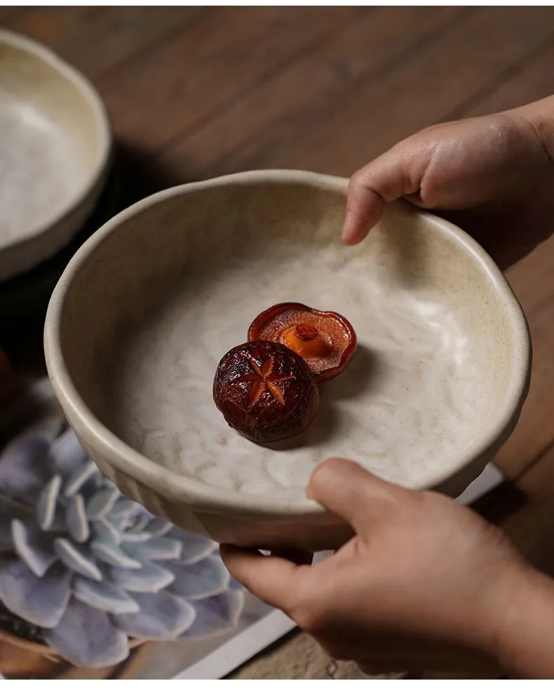 Creamy-White Ceramic Deep Plate – Edge Protection Soup & Bed Bowl