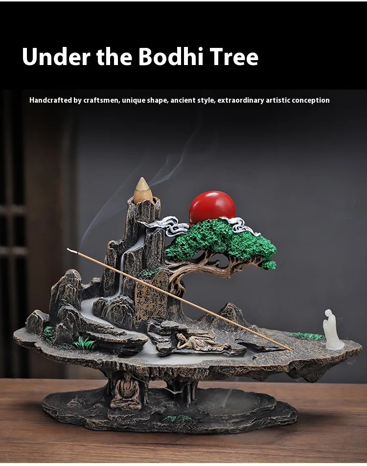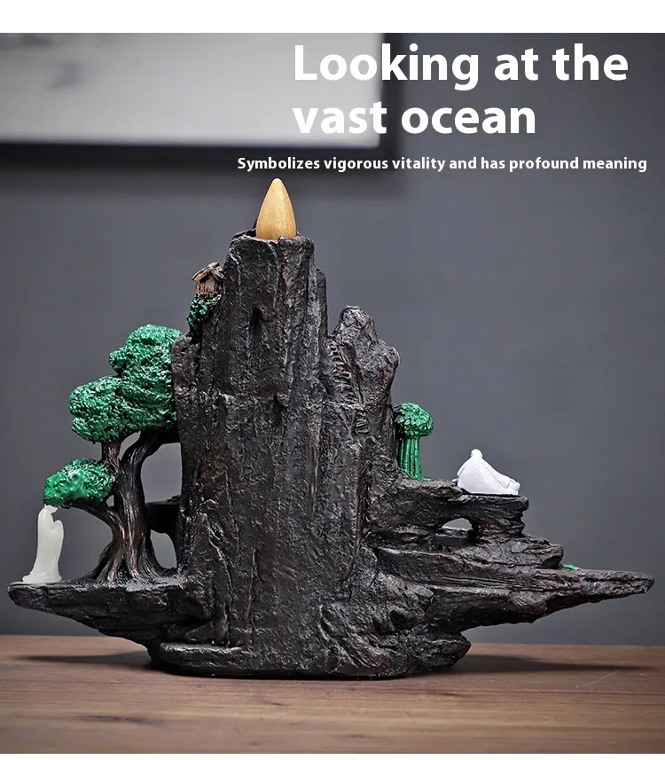 Transform your space into a serene oasis with the Creative Backflow Incense Burner. Crafted from high-quality resin, this decorative incense burner features a unique backflow design that creates a mesmerizing smoke cascade, mimicking the effect of clouds or mist. Perfect for anyone seeking to enhance their home decor with both aesthetic appeal and a relaxing atmosphere, this backflow incense burner adds an artistic and calming touch to any room. Whether used for meditation, relaxation, or simply to enjoy the soothing effects of incense, this resin-crafted burner offers a truly immersive experience.