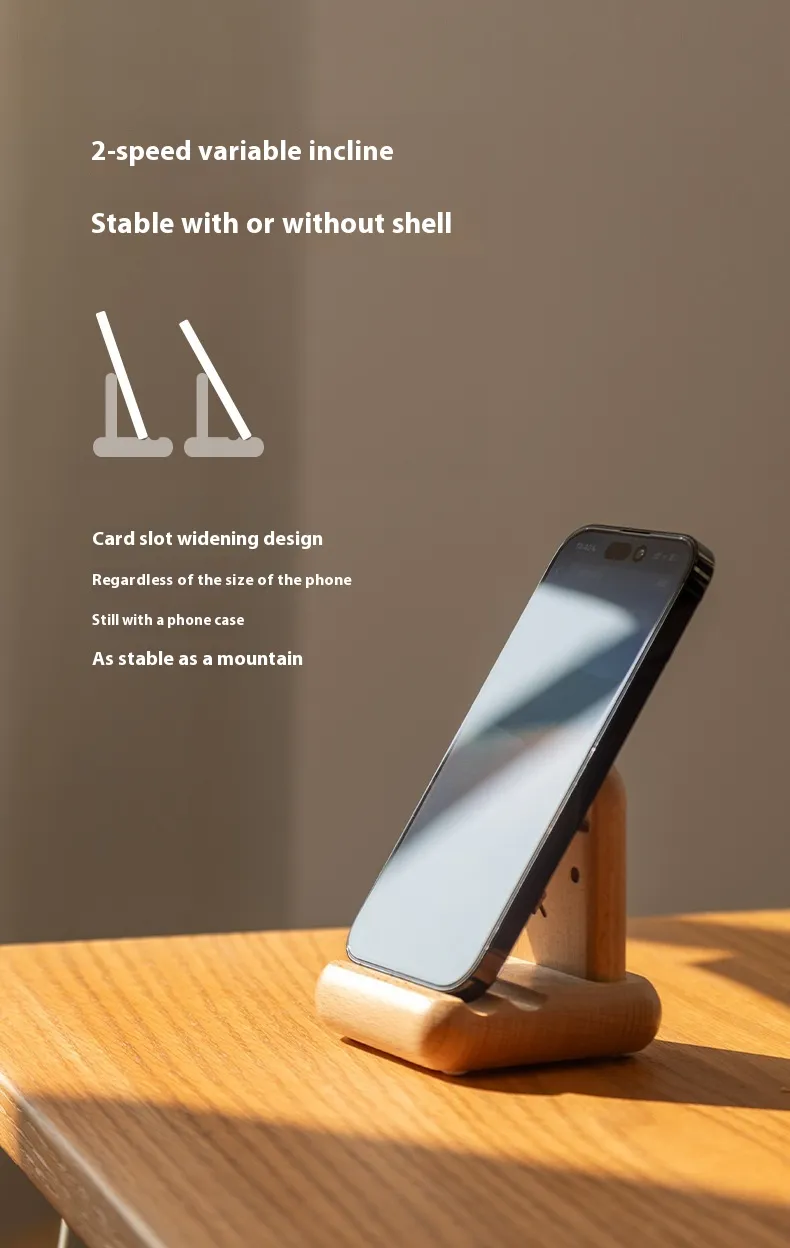 Crafted from premium eco-friendly wood, it provides a stable and durable platform for smartphones. Its angled design ensures optimal viewing for video calls, streaming, or browsing, while the compact size keeps your space organized and clutter-free. Perfect for those who appreciate aesthetic design and practicality.