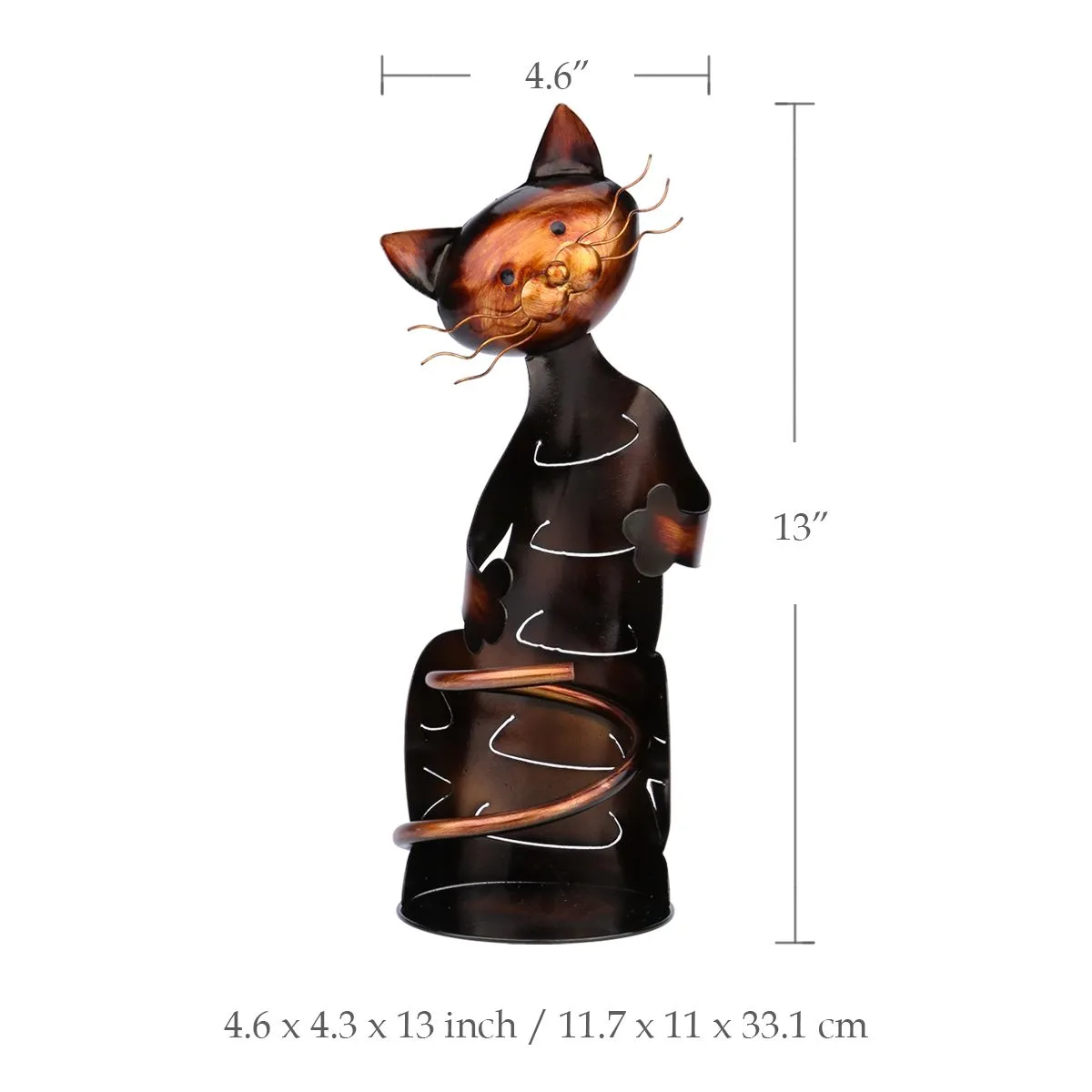 design. The playful cat figurine, which appears to be holding wine bottles in its paws, brings a fun and quirky touch to your home. It’s a