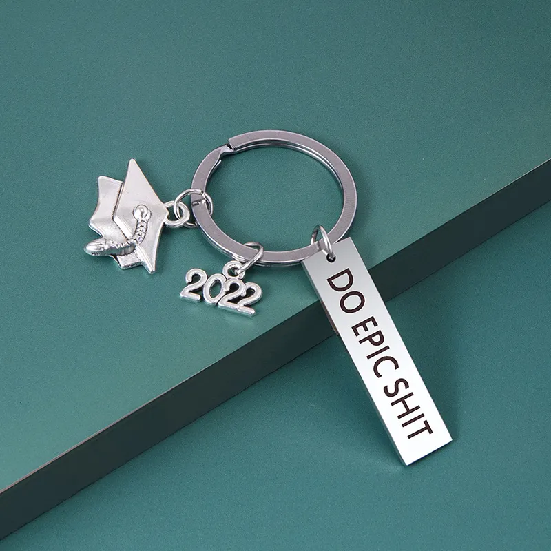 Creative DO EPIC SHIT Keychain Silver Graduate Cap Hat Charm Key Chains